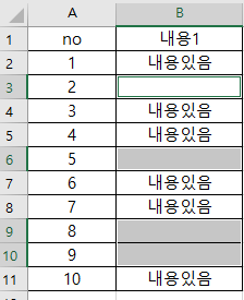 위와 같은 예시가 있다고 가정해보자. 2번, 5번, 8번, 9번의 행을 삭제하고 싶을 경우 하나하나 삭제를 하는 것이 귀찮은데 데이터가 만약에 만건이 넘어갈경우 정말 끔찍할 것이다. 이럴 때 다음과 같은 방법으로 엑셀 데이터를 제거할 수 있다.