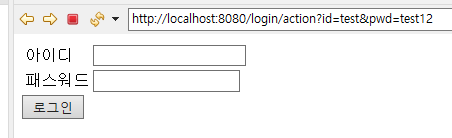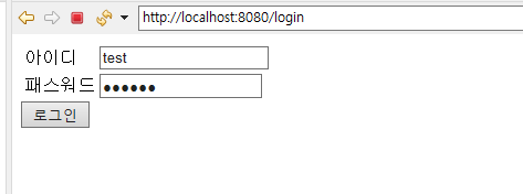 localhost:8080/login을 실행하면 위와 같이 심플한 로그인페이지가 뜨며 여기에 아이디와 패스워드를 입력 후 로그인 버튼을 누르게 된다면 login/action 을 매핑한 loginAction 메소드를 실행하게 된다.