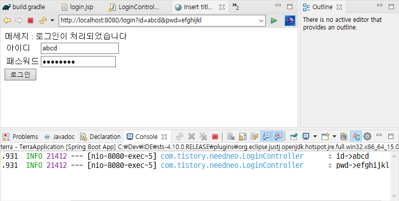 model.addAttribute("msg", "로그인이 처리되었습니다");