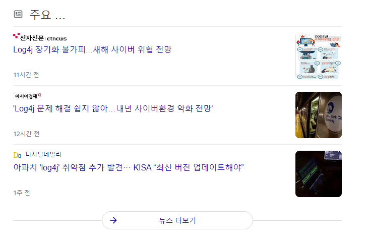 최근 Log4J 버전에 해킹 이슈들이 터지면서 KISA에서는 기업들에게 경고 메세지를 주고 있고, 우리 회사의 경우 ISMS를 인증하였기 때문에 Log4J 대응으로 업무가 터져버릴 지경이다.