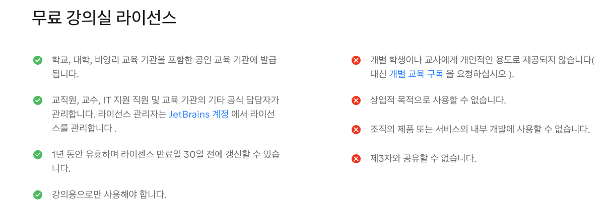 다만 인텔리J는 모두 유료는 아닙니다. 웹개발과 같은 것을 제외한 단순히 자바 어플리케이션 개발이라면, 인텔리J 무료 버전이 존재합니다. 그러니 인텔리J로도 익히길 원한다면 무료 버전으로 어플리케이션 같은 것을 개발해봐도 될 것 같습니다. 그리고 학생이나 선생/교수와 같이 교육쪽에 있는 분들은 인텔리J가 무료이니, 내가 학생이라면 이클립스보다 인텔리J로 개발해보는 것이 더 좋은 선택일 수 있습니다.