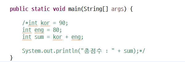 주석은 크게 단일 주석과 블록 주석으로 나뉘어 지며, 이클립스(Eclipse)와 같은 통합 환경 개발 툴(IDE)을 사용하면서 가장 많이 사용하는 단축키가 바로 블록 주석이 아닐까 싶습니다.