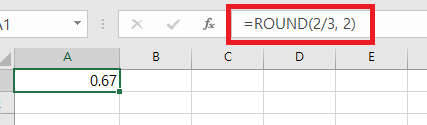 두번째 인자값을 2로 할 경우 아래와 같이 소수점 2번째 자리까지 반올림이 되어서 0.67값이 나오게 됩니다.