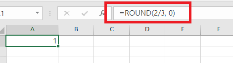 위와 같이 2/3의 값을 예시로 설명을 해보도록 하겠습니다. 이 값을 반올림하여 정수로 형태로 변경을 하고 싶을 경우, 자리수를 0으로 적으면 됩니다.