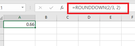 위의 예시는 반올림 예제에 본 것같이 반올림을 할 경우 0.67이 나오지만, 버림(rounddown)을 사용하게 될 경우 0.66이 되어버립니다.
