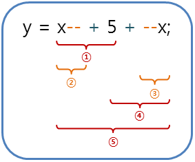 int y = x-- + 5 + --x;