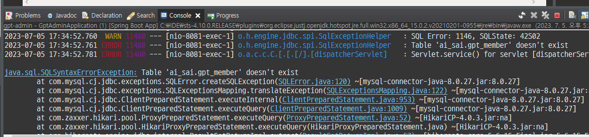 에러를 보면, gpt_member라는 테이블이 없다고 나오는데 내가 만든 테이블의 명칭은 대문자로 "GPT_MEMBER"라는 테이블이었다. 즉, 내부적으로 소문자로 테이블을 호출하고 있다는 것이었다.