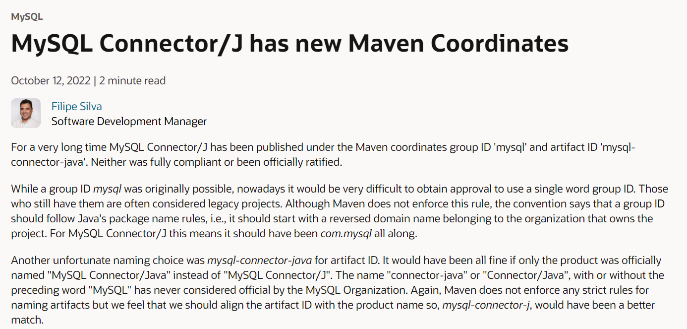 [1] Oracle Blog, MySQL Connector/J has new Maven Coordinates