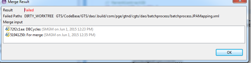 이때 Dirty WorkTree라고 에러가 발생하면서, 상대방이 커밋한 소스를 받지 못하는 경우가 생기는데 이럴 경우 문제가 되는 파일을 별도로 백업을 한 후(혹은 메모장에 내용을 복사해 놓거나), 다시 Pull을 받으면 문제가 해결 된다.