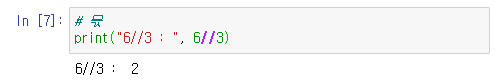 숫자 사이에 //를 입력하면 왼쪽 값을 오른쪽으로 나눈 후 몫 값 표시