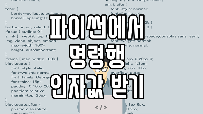 파이썬으로 작성된 파일을 실행할 때 인수(argument, 인자값)를 받아서 처리를 해야 되는 경우가 있다. 예를 들어, 로컬과 개발 등의 환경이 서로 달라서 인자값을 줘야 한다던지 같은 파일을 다른 목적으로 처리를 해야 할 때 인자값을 줄 수가 있을 것이다. 이럴때 파이썬에서는 sys.argv에 값을 담아 처리를 할 수 있게 된다.